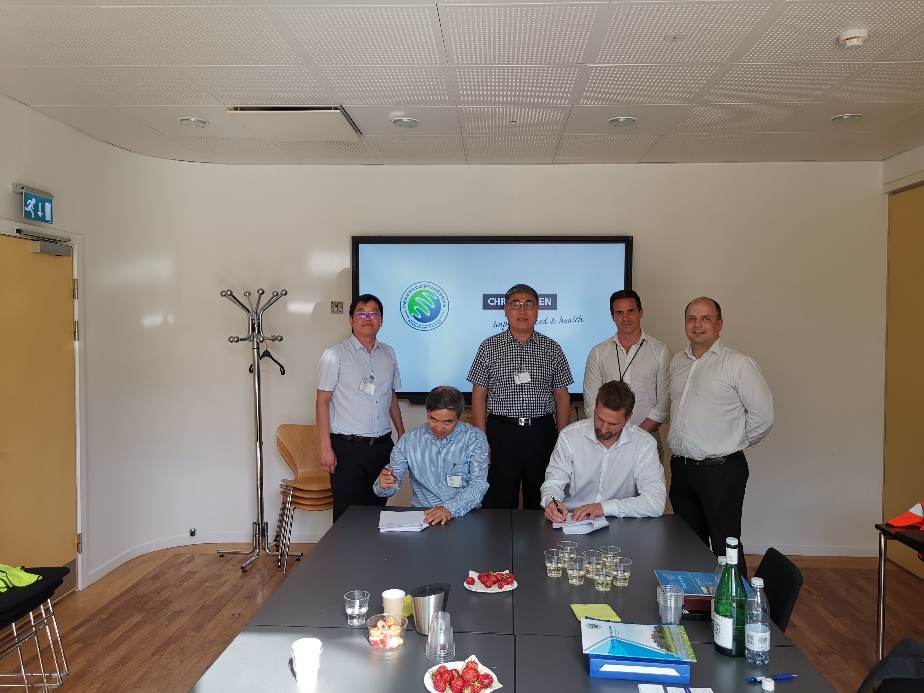 6月24日至25日,何兴元所长一行应丹麦CHR-HANSEN集团邀请,考察了集团位于丹麦Hvidovre的有益菌剂生产基地及植物创新研发中心。期间,何兴元所长介绍了我所基本情况及我所在农业研究领域所取得的主要成果,CHR-HANSEN基地负责人Kim Muller Christensen博士介绍了CHR-HANSEN集团的发展历程及在全球范围的经营情况、科技创新布局等,植物创新研发中心主管Lars Molbak博士介绍了Plant Health Innovation研发中心的基本情况及未来的合作方向。李向楠研究员就其承担的CHR-HANSEN首个中国项目情况进行了介绍。会议中,何兴元所长与CHR-HANSEN集团签署了科技创新合作协议,双方将以合作研究项目为契机,进一步加大科研合作。会后,何兴元所长一行在CHR-HANSEN基地负责人等陪同下考察了CHR-HANSEN有益菌剂生产线。
