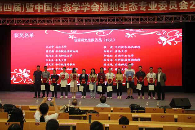大会闭幕式由中国生态学学会湿地生态专业委员会秘书长、中国科学院东北地理与农业生态研究所武海涛研究员主持。青岛大学郗敏教授、东北师范大学卜兆君教授、北京林业大学张明祥教授、中国科学院东北地理与农业生态研究所刘波博士等分别代表各分会场召集人,对分会场报告进行了总结。闭幕式上,还公布了评选出的研究生优秀学术报告和优秀墙报获得者名单。吕宪国研究员、姜明研究员和王升忠教授向获奖