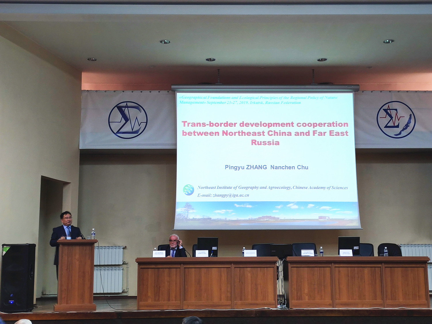 为了进一步落实中国科学院东北地理所与俄罗斯科学院西伯利亚分院索恰瓦地理研究所签署的合作协议,深化我所在俄罗斯西伯利亚和远东地区的科技合作,2019年9月23-28日,张平宇副所长带队访问索恰瓦地理研究所和伊尔库茨克国立大学,并参加“自然资源利用的区域政策之地理基础与环境原则国际学术会议”。张平宇作了题为“Trans-border development cooperation between Northeast China and Far-east Russia”的大会报告,张树文研究员、常丽萍研究员、于灵雪助理研究员和初楠臣博士生都在分会场作学术报告。