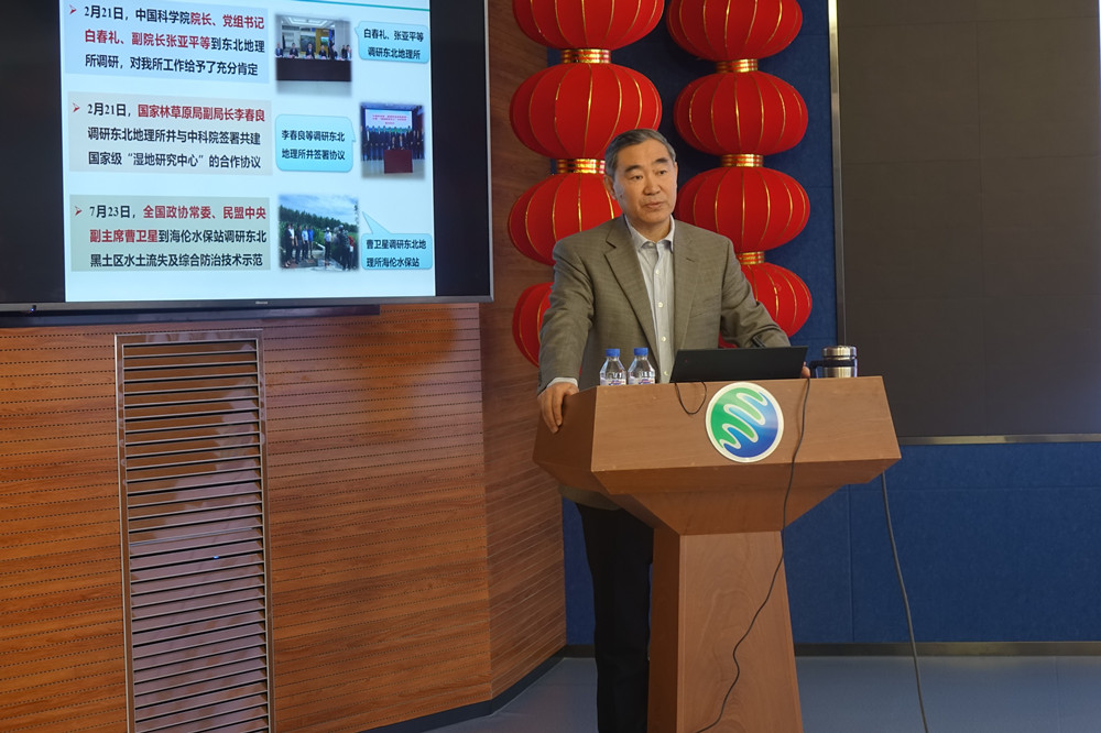 何兴元所长代表领导班子作2019年度工作总结。他从研究所“一三五”规划进展、人才建设和研究生培养、科研工作进展、综合管理与服务等四个方面详细介绍了一年来研究所各项工作进展。2019年,恰逢建国建院七十周年,院领导多次莅临指导指导工作;超额完成研究所“一三五”规划年度目标,“结构性调整、内涵式发展”学科评估有序开展,3学科进入ESI全球前1%行列;2位青年才俊担任国家项目首席和获得优秀青年基金资助,2人分别获院人才计划择优支持和终期评估优秀;获批国家重点研发项目1项、科技基础性工作专项项目1项;SCI文章数量再创新高,高质量、高被引论文显著增加;“北方城市森林生态服务功能研究”获吉林省科技进步一等奖;国家级“湿地研究中心”成立并揭牌,新获批院水源地生态农业工程实验室,三江站被评为科技部优秀台站,大安站、兴凯湖站入选农业农村部“国家农业科学观测实验站”。