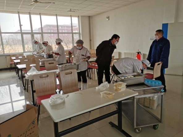 中午时分,后勤和食堂人员已经提前在职工微信群里面发出用餐通知,并按照统计人数把可口的盒饭送到各个办公楼,员工自取,避免了集中用餐带来的风险。所领导强调一定要搞好食堂卫生和保障食材来源安全。