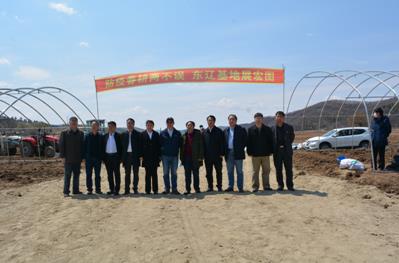 会后,长春分院一行来到辽河源基地种植试验区,正所谓“人勤春来早,农忙正当时”,试验田已经是一片热闹的农忙景象。看到今年的设施农业做的如火如荼,8栋棚室已经建成并发挥了作用,各种经济作物和新型种植技术正在这里展现。仇景锐对基地工作给予高度评价,经过三年的建设基地面貌有了很大改观,已经形成规模,并在示范带动地方经济方面前进了一大步。看到试验地中醒目的条幅“防疫春耕两不误,辽河源基地展宏图”,调研人员一致认为这是辽河源基地目前的真实写照,并在标语前合影留念。