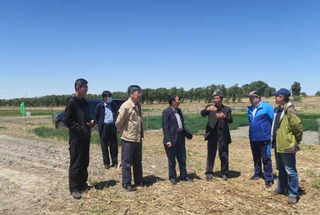 5月26日,调研组驱车300公里来到长岭草地农牧生态研究站,就松嫩草地优质牧草生产和畜牧业持续发展问题开展调研。站长周道玮研究员和吉林省畜牧业管理局长岭种马场场长张铁军陪同了调研。周道玮重点介绍了秸秆添加+喷淋冲洗、覆沙+喷淋冲洗等关键技术,钟荣珍研究员介绍了秸秆养羊舍饲模式和肉质改善关键技术。随后,调研组来到长岭站与吉林省圣一金地生物质开发有限公司合作建立的草地农牧业示范基地,公司董事长龚政介绍了双方合作创建的“小冰麦+燕麦草”、“燕麦+燕麦草”一年二季作物种植模式和20万亩退化草原高效流转利用情况。调研组一行就种植技术的经济效益、市场前景进行了详细了解,并围绕“喷淋+秸秆+生物菌”技术、智慧农业管理平台和食用菌菌丝化多功能秸秆饲料研发进行了深入座谈。