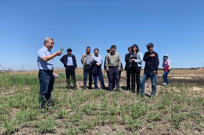 5月27日上午,调研组来到大安碱地生态试验站,重点调研了国家重点研发计划项目实施进展情况和盐碱退化草地生产力提升万亩示范区。梁正伟研究员等科研人员详细汇报了大安站科研监测、平台建设和成果产出情况,并实地介绍了耐盐碱植物筛选、耐盐碱水稻杂交育种、苏打盐碱地改良剂“脱碱3号”、 盐碱地植被恢复与水肥高效调控的研发与应用情况。考察组还参观了吉林省直属机关工会工作委员会设立的梁正伟 “劳模创新工作室”,高度评价了近10年来大安站主持实施了国家项目3项,获得国家科技进步二等奖2项等丰硕成果。