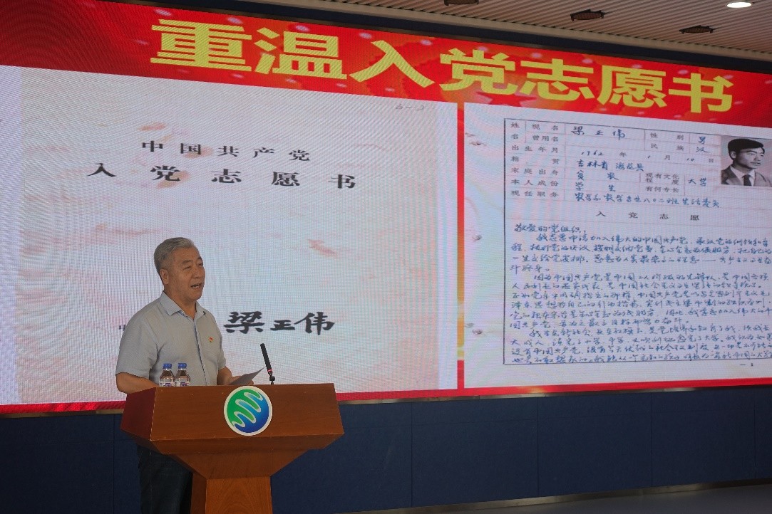 在重温入党志愿书环节,由梁正伟研究员、冯献忠研究员和肖路同学分别代表不同年龄段,不同时期入党的共产党员,重温他们的入党志愿书,与大家共同追忆初心使命。