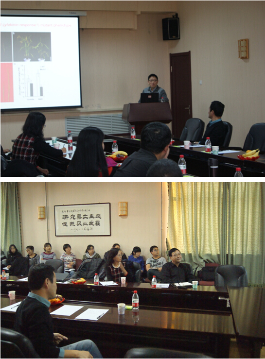 2014年11月7日,应“大豆分子设计育种重点实验室”邀请,植物基因组学国家重点实验室主任、中国科学院遗传与发育生物学研究所左建儒研究员,分子发育生物学国家重点实验室副主任、中国科学院遗传与发育生物学研究所陈凡研究员,中国农业科学院作物科学研究所邱丽娟研究员,水稻生物学国家重点实验室主任、中国水稻研究所钱前研究员来我所做了精彩的学术报告,报告会由实验室副主任孔凡江研究员主持,所内外的相关科研人员和研究生听取了报告。