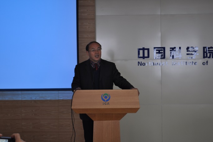科协李景涛副主席在会上致辞。他充分肯定了我所近年来在相关领域取得的成绩,重点点评了作物高光效种植技术和耐盐碱水稻“东稻4号”大面积推广为地方建设粮食增产作出的突出贡献。两个挂靠学会地理学会和遥感学会组织都开展了的一系列丰富多彩的学术活动,对促进学会成员间的交流起到积极的推动作用。他期望东北地理所能利用好学会平台,继续服务地方建设,取得更多更好的成果。
