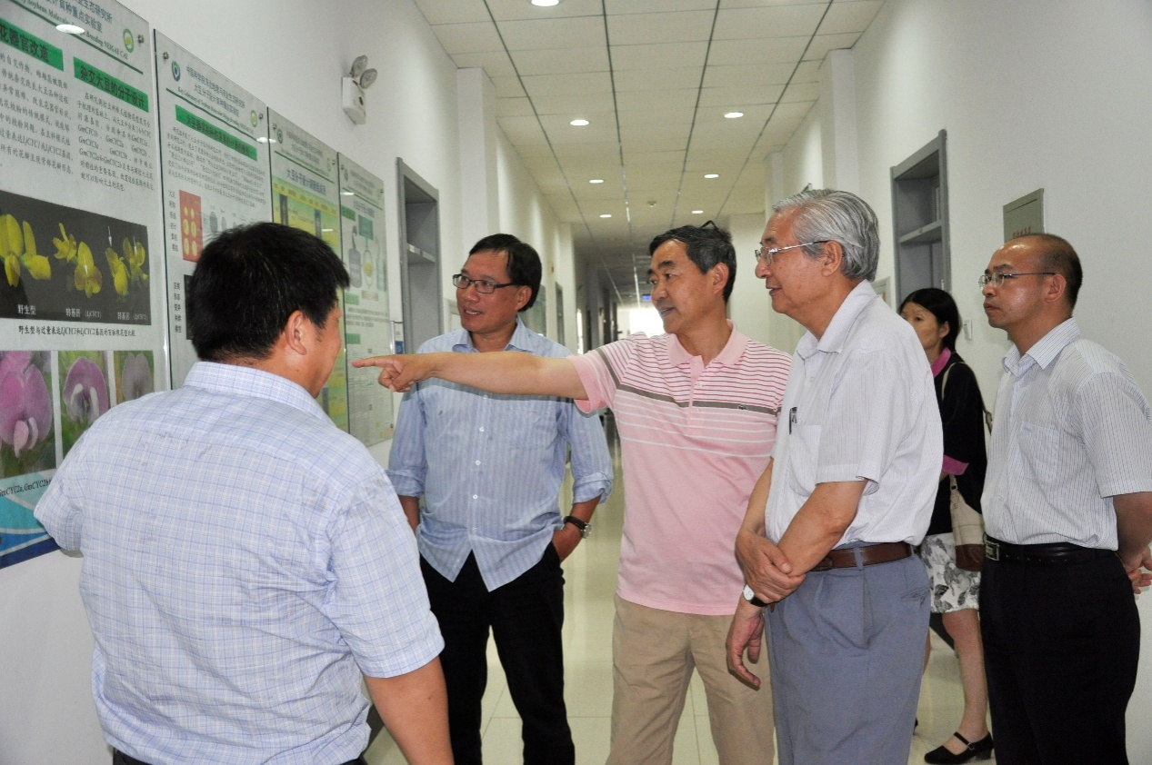 在农业楼,冯献忠研究员介绍了大豆分子设计育种重点实验室的工作,并专题汇报了“杂交大豆异交率差异的分子遗传机制”的研究计划。许智宏院士和何祖华研究员对于实验室的工作予以了肯定,对于通过分子设计提高杂交大豆产量的研究工作表示支持,希望继续加强研究工作,将现代生物技术充分应用到农业生产中去。