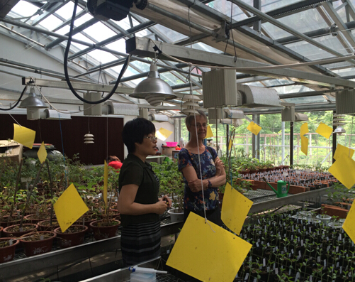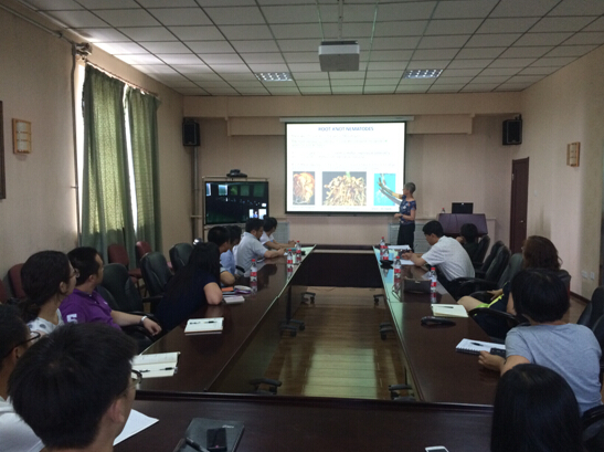 2015年6月17日美国加州大学戴维斯分校Valerie Williamson教授应农田有害生物控制学科组王从丽研究员邀请,受国家外国专家局资助来所进行合作研究和学术交流。6月18日下午在哈区进行学术报告“The chemical ecology of root-knot nematode targeting to plant entry sites”,长春视频,报告主要从根结线虫基因组学、遗传机制、北方根结线虫的遗传学、线虫的寄主范围和抗性、根结线虫怎样获得侵染新寄主的能力、化学信号(线虫对寄主的反映及相互作用)等内容进行交流。所里的很多科研人员和研究生们都积极参加并踊跃发言,达到了学术交流的目的。王从丽研究员向美国专家介绍了实验室的研究方向及进展,专家对该学科的几方面研究进行了充分讨论,并给予充分的肯定,为了学科组今后更顺利和更好的发展,专家提出了宝贵的建议,并对研究生的研究方案和方法进行了详细的指导。Williamson教授又到中国科学院海伦生态实验站进行了参观访问,韩晓增站长详细地为她介绍了海伦试验站长期定位实验,使Willamson教授对东北黑土及其相关的研究有了更深的了解。Williamson教授和王从丽研究员在线虫识别植物信号的鉴定与应用方面有了更深一步的讨论,她的访问对促进中国科学院东北地理与农业生态研究所与美国加州大学的持续合作奠定了基础。