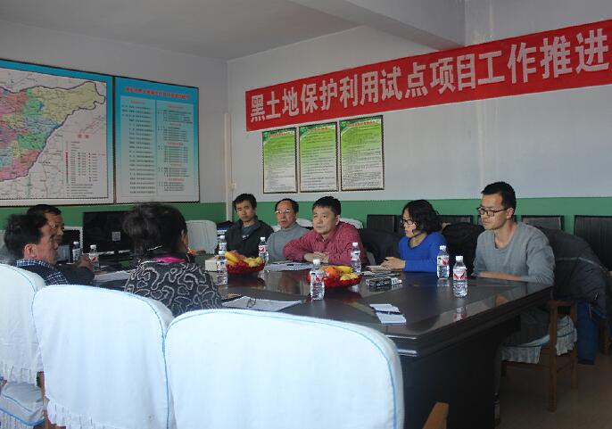 在海伦市农业技术推广中心,进一步推进了农业部东北黑土地保护项目在海伦市的实施工作。作为东北黑土保护项目专家组组长,韩晓增研究员听取了海伦市农业技术推广中心吴全伟副主任对2015年项目实施情况的介绍,并对玉米秸秆还田和有机施用等相关技术进行了指导,同时指出了玉米秸秆深混还田应该使用大马力拖拉机配合液压翻转犁进行翻扣深混,以增加秸秆还田的深度、避免因表层秸秆还田量过多引起的春季失墒,影响作物出苗等问题。随后与会人员就有机肥集造等问题进行了深入的讨论。