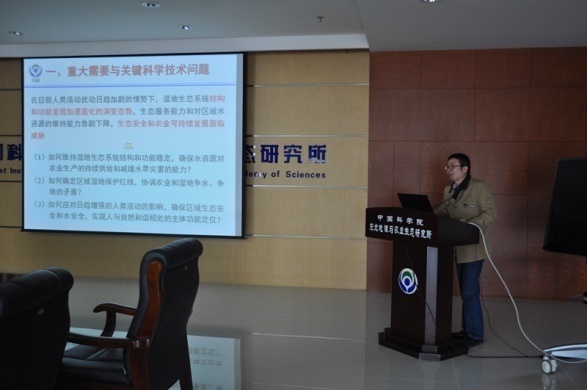 会议务实高效,对中科院重点部署项目“城市生态服务功能提升技术研究与示范”、中科院野外台站联盟项目“东北地区生态变化评估”和中科院野外站网络重点科技基础设施建设项目项目“三江站湿地水平衡与水源涵养研究平台建设”三个项目的实施方案进行了研讨论证。周桔处长首先介绍了中科院设立三个不同类别项目的背景和基本情况。王文杰、王宗明和宋长春研究员分别代表三个项目汇报了各项目的研究内容和具体实施方案。