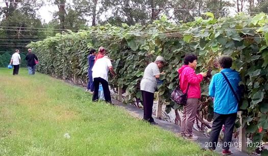 初秋的哈尔滨气候宜人、秋高气爽,这些昔日的同事、老友们相会,漫步于万花丛中,欣赏回廊内挂满枝头的累累果实,感受丰收在望的浓浓韵味,他们一边饶有兴致地品尝着架上的葡萄,一边交流着采摘的体会,尽情享受着趣味采摘活动带来的欢乐时光。