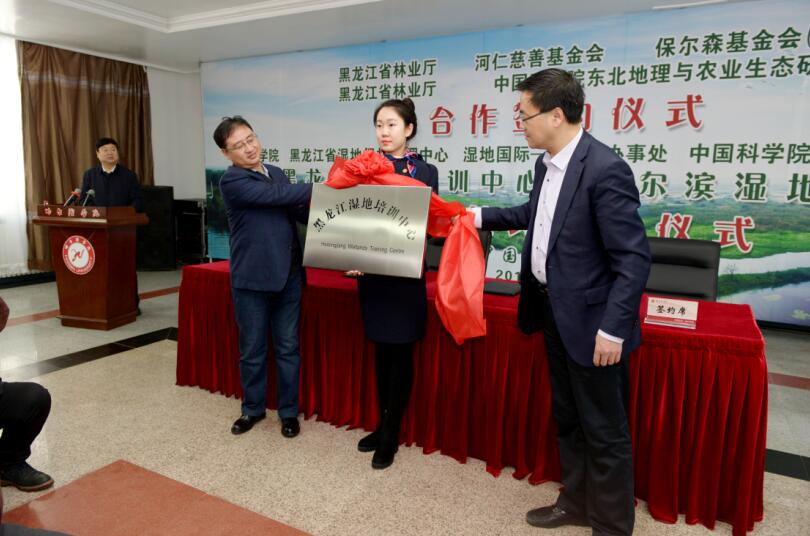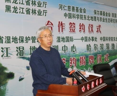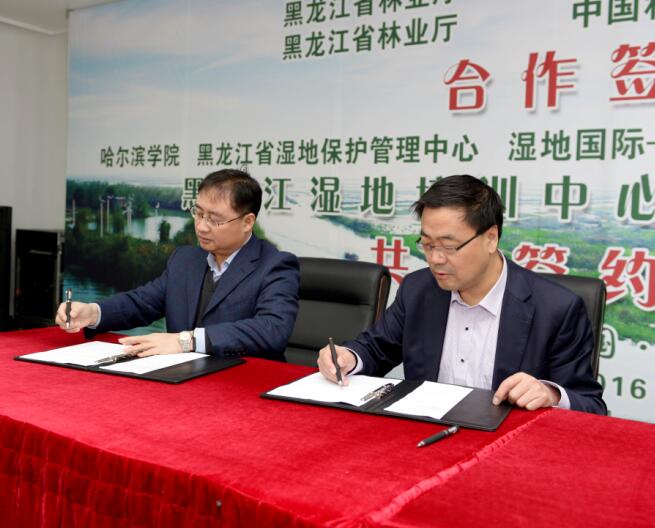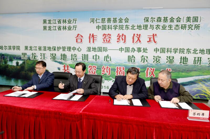 2016年11月22日上午,中国科学院东北地理与农业生态研究所与黑龙江省林业厅在哈尔滨市签署了全面战略合作协议,在此合作框架下,东北地理所与黑龙江省湿地保护管理中心、湿地国际-中国办事处及哈尔滨学院签署“关于支持共建‘黑龙江湿地培训中心’、‘哈尔滨湿地研究院’合作框架协议”。我所张平宇副所长出席签字仪式,并与黑龙江省林业厅厅长杨国亭、哈尔滨市政府副秘书长王晓春等领导共同为“黑龙江湿地培训中心”、“哈尔滨湿地研究院”揭牌。我所吕宪国研究员被聘为哈尔滨湿地研究院学术委员会主任委员,并在签约仪式上宣读了哈尔滨湿地研究院组织机构及学术委员会名单。参加签约仪式的还有我所所长助理姜明研究员、哈区农业中心副主任宋凤斌研究员、赵恒田研究员、王强副研究员等。