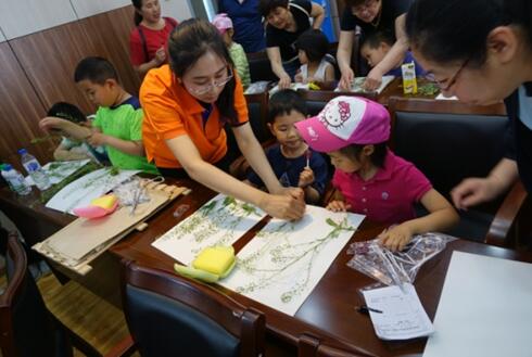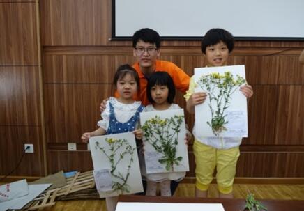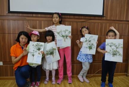 湿地标本馆刘波博士为小朋友讲解了标本制作的基础知识和基本方法,小朋友们每五人一组亲手在园区内采集一种指定的植物,在研究生志愿者的指导和帮助下,小朋友独立完成采集、清洗和制作标本的全过程。