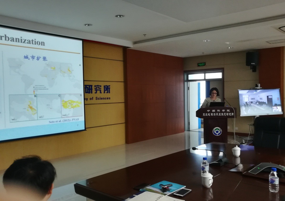 2017年6月27日上午,应何兴元所长、王文杰研究员邀请,北京大学赵淑清教授来东北地理所做了题为“中国的城市扩张及生态影响”的学术报告。报告会由郑海峰博士主持,何兴元所长、黄铁青副所长、田春杰研究员、宋开山研究员等师生参加了此次报告会,沈阳应用生态研究所陈玮研究员等专家通过视频连线形式参与了讨论与交流。