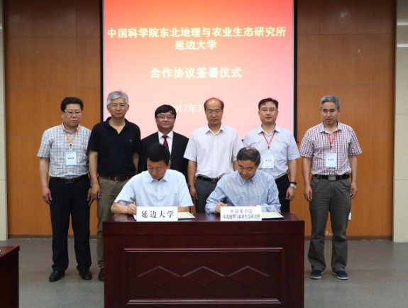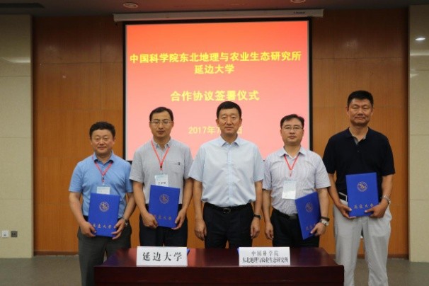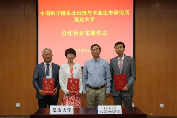 2017年7月1日,东北地理所与延边大学合作协议签署仪式在延边大学科技馆隆重举行。吉林省科技厅陈维友副厅长、基础处张危宁处长,延边大学金雄书记、陈铁副校长,东北地理所所长何兴元研究员、副所长张平宇研究员、黄铁青研究员和李秀军研究员等出席签署仪式。东北地理所所长何兴元研究员和延边大学党委书记金雄教授分别代表双方单位在合作协议书上签字。