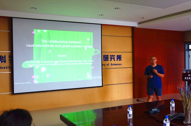 会上,李秀军副所长对各位专家的到来表示欢迎,并希望藉此交流,促进东北地理所在土壤-生物领域的进一步发展,并充分发挥兄弟单位之间的优势互补,共同突破创新。白洋研究员以其发表在Nature的文章为核心内容,给大家生动介绍了“The relationship between root microbiota and plant nutrient uptake”,从实验体系的构建、微生物组的高通量测序、并结合传统培养等几方面,探讨了如何进一步深入挖掘和探索根际微生物组与植物间的相互关系及其对养分吸收利用的影响。施卫明研究员围绕着如何实现氮的高效利用,详细介绍了“Nitrogen transformations in modern agriculture and the role of biological nitrification inhibition”,报告着重探讨了硝化抑制剂对土壤氮循环过程的影响及其相关机理,并对其在农业生产中的应用及其对环境的影响做了展望。此外,生态环境中心高婕博士、南京土壤所陆玉芳博士、生态环境中心徐丽娇博士、南京土壤所黄洁雪博士等分别围绕着微生物群体效应、根际微生物分泌物的研究方法、菌根共生及磷吸收、以及植物磷吸收的功能基因及其代谢途径等研究结果与最新进展做了精彩讲解,并与会人员就相关问题进行了深入的讨论与交流。梁正伟研究员特别针对菌剂的合理有效利用、硝化剂的使用前景、以及如何实现减氮增效的农业长期目标,与与会专家进行了深入交流和探讨。