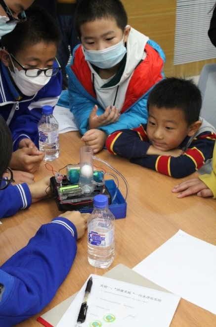为了巩固科普讲座的知识内容,根据讲座的知识点,为同学们设计了三个科普趣味小实验。通过趣味实验一:“清澈见底“—污水净化实验,使学生们深入了解了湿地污水净化功能。通过趣味实验二:“周而复始”—水循环实验,让学生们了解湿地在大自然水循环中的重要角色。通过趣味实验三:“以小见大“—探索微观世界,让学生们通过显微镜观察水生态微系统,深入了解水生植物的生存方式和生存价值。