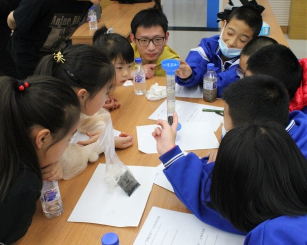 现场的实验分为六个小组,每个小组由研究生志愿者作为实验老师,进行现场指导。别开生面的科学实验演示、手脑并用的互动环节、开发创造性思维的提问环节,让同学们在轻松的氛围中亲历探究过程,获得科学知识,培养了热爱科学、求真务实、友爱协作的科学精神,受到学生和老师的热烈欢迎。