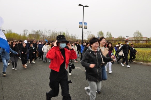 哈尔滨所区同步开展环所跑活动,参赛者互相加油、欢呼喝彩,欢声笑语此起彼伏。