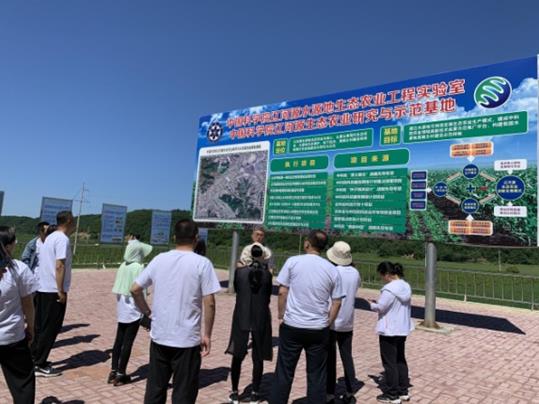 中国科学院“黑土粮仓”科技会战长春示范区面向吉林省玉米主产区,以吉林省梨树县、公主岭市、农安县和东辽县为核心示范点,优质高效品种-栽培模式-绿色生产技术-循环农业-生态与经济效益双赢为主线,开展薄层退化黑土保育与粮食产能提升技术集成与示范。为了更好地推进长春示范区各技术模式的有序开展,6月18日,长春示范区青年突击队队长梁爱珍研究员及示范区骨干成员一行19人到辽河源基地调研学习丘陵区高效生态农业创新发展模式的示范情况,辽河源基地主任宋凤斌研究员进行详细介绍。