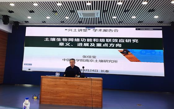 9月24日,应中国科学院东北地理与农业生态研究所的邀请,中国工程院院士、中国科学院南京土壤研究所张佳宝研究员作为东北地理所“兴土讲堂”首讲人作专题学术报告,报告题目为“土壤生物网络功能和级联效应研究意义、进展及重点方向”。报告会通过腾讯会议同步直播,线下与线上人数达300余人,报告会由东北地理所所长姜明主持。