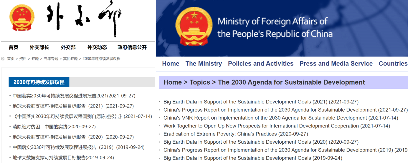 《地球大数据支撑可持续发展目标报告(2021)》在外交部官方网站发布