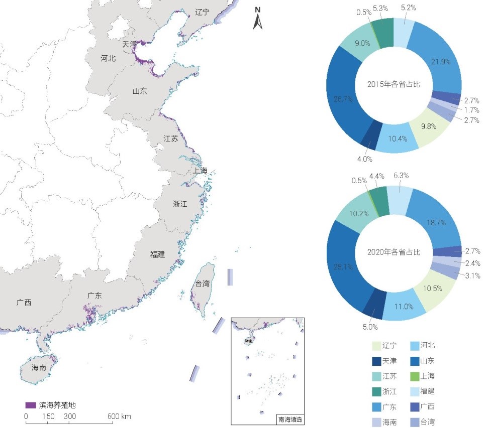 2020 年中国滨海养殖池空间分布格局