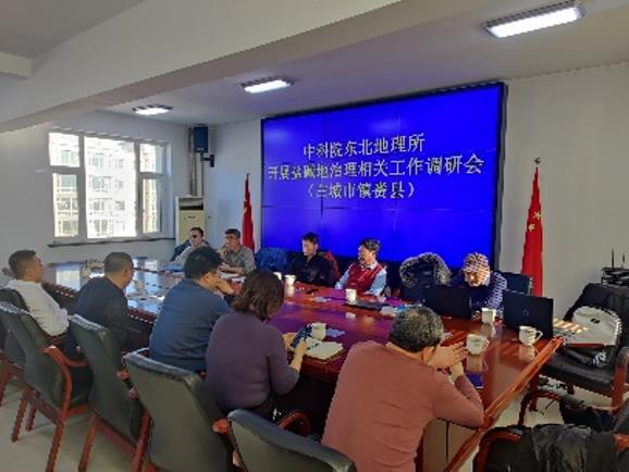 白城市农业农村局高级农艺师石勇对调研组一行表示欢迎,对中国科学院东北地理与农业生态研究所多年来对白城市的支持表示了感谢,并全面介绍了白城市农业发展现状。白城市其它相关部门负责人全面介绍了白城市的土地现状、盐碱地土地利用变化情况、典型治理修复技术及主要工作进展,并就当前白城市在黑土地保护和盐碱地改良治理开发中存在的问题与调研组进行了深入交流。