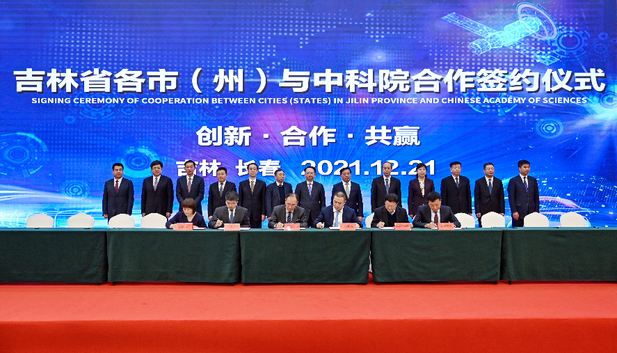 2021年12月21日,吉林省各市(州)与中科院合作签约活动在长春举行。省委书记景俊海出席并讲话,省长韩俊主持仪式。东北地理所所长姜明、党委书记苏阳、副所长李秀军出席,姜明代表研究所与各市(州)及企业签约。