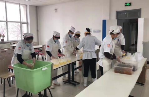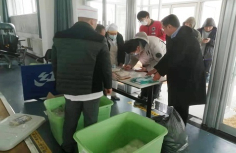 中午时分,用餐微信群里面发出用餐通知,物业人员按照统计人数把饭菜、水果送到研究生宿舍和流动公寓宿舍。姜明和苏阳关切地询问饭菜是否可口、是否热乎,要求一定要搞好食堂卫生和保障食材来源安全,并设置 “临时厨房”供简单加工食材使用。送餐完毕,姜明和苏阳来到研究所食堂,慰问员工食堂,对工作人员的辛勤付出表示感谢。