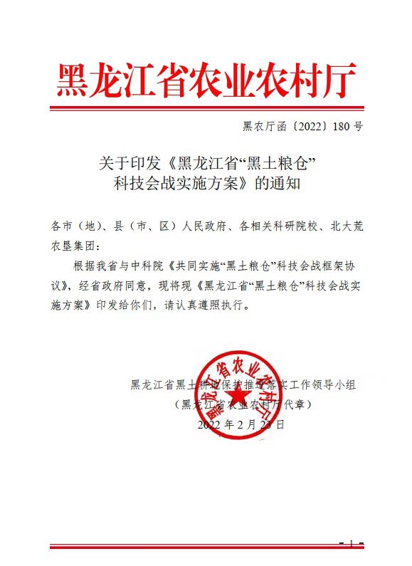 黑龙江省为我国黑土的主要分布区域,在保障国家粮食安全方面具有举足轻重的战略地位。为贯彻落实习近平总书记关于把黑土地用好养好的重要指示精神,深入实施“藏粮于地、藏粮于技”战略,积极响应《国家黑土地保护工程实施方案(2021-2025年)》《东北黑土地保护规划纲要(2017-2030年)》《东北黑土地保护性耕作行动计划(2020-2025年)》的总体部署,加快探索黑土地保护利用与促进粮食稳产增产新模式新路径。根据《中国科学院 黑龙江省人民政府共同实施“黑土粮仓”科技会战框架协议》,黑龙江省黑土耕地保护推进落实工作领导小组于2022年2月23日正式印发了《黑龙江省“黑土粮仓”科技会战实施方案》(以下简称“实施方案”)。