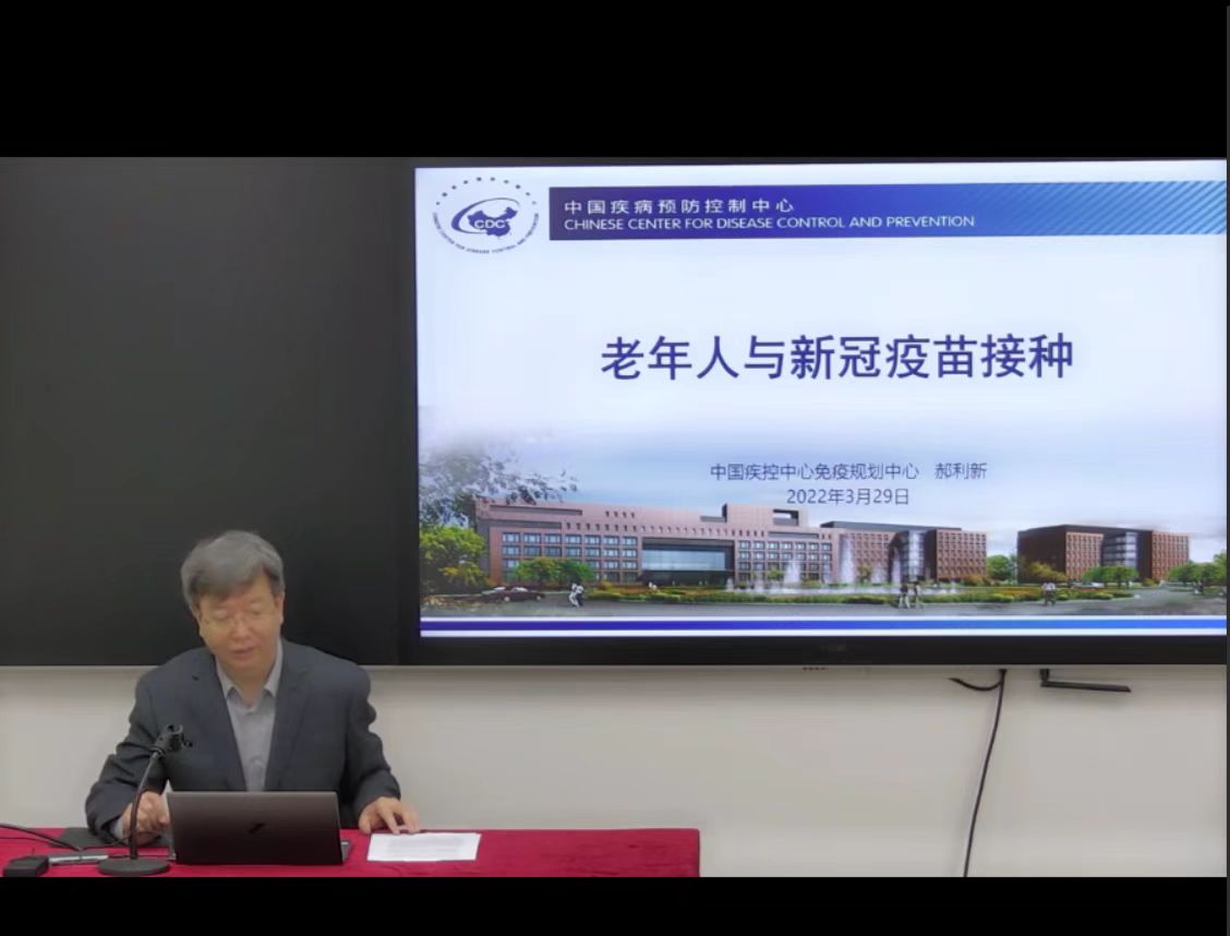 中国疾控中心免疫规划中心公众沟通与健康教育室主任郝利新博士围绕疫苗接种科普知识、接种必要性和科学性等作了专题报告。郝利新博士从人体免疫系统与疫苗接种、新冠病毒疫苗及其接种策略、老年人接种疫苗意义重大、老年人接种疫苗常见问题等四个方面进行了讲解,阐明了接种疫苗的好处。
