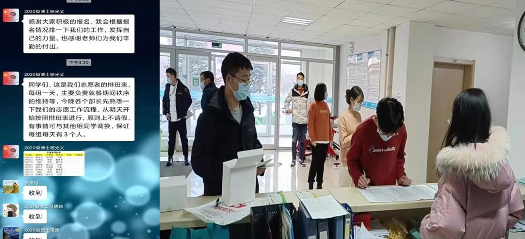 在所党政班子领导下,全所各职能部门及物业公司团结协作,为学生解决吃、住、学等问题,全力保障学生在研究所静态管理期间学习、生活正常。人事教育处第一时间发布了《关于长春园区封闭管理期间学生相关工作安排的通知》、《致全体研究生倡议书》;分管研究生教育工作的副处长苑春宇在研究所留守,与学生面对面沟通交流,鼓励、激励大家;7名工作人员分别对接不同年级学生,关心关注学生需求,随时解决问题。党委办公室组织视频连线慰问学生,深入了解学生的学习、生活、思想状态,倾听意见建议和需求;关注学生党支部调整设置,更好地发挥学生党员的作用。办公室组织学生单独优先进行所内核酸检测,联系落实防疫物资,关心关注健康监测学生情况,为大家及时送去物资。条件保障处和物业公司全力保障学生一日三餐,从原材料采购到制作、装餐盒、统计订餐数量、运送到宿舍楼下,每一步都认真细致;他们还组织采购了水果、零食,为学生们送上了慰问礼包和防护口罩;为保障园区内的安全,他们承担了全部进所物资消毒、环境消杀、垃圾清理等繁重的工作。信息中心为学生及时解决网络问题,为备考学生单独开通网络,调试设备,保证学生面试和学习需求。财务处解答学生的报销困惑,为他们及时办理转账和报销,保证投稿文章能顺利见刊。科研计划处为学生提供防疫科普知识。学术期刊中心为学生论文投稿及文献查询提供帮助。分析测试部帮助学生解决实验药品缺少的问题。