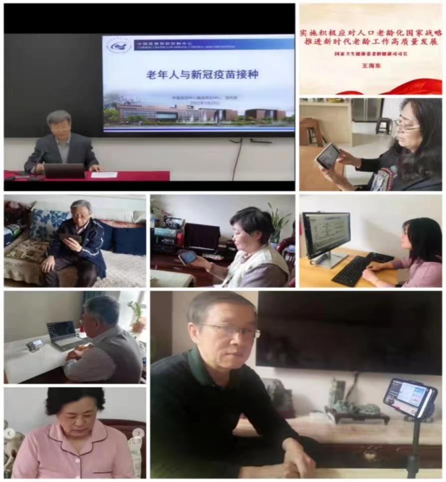 倡导健康居家文化生活,丰富线上学习内容。为减少疫情期间停课停学给夕阳红合唱团带来的影响,组织学员定期参加合唱团教师的在线直播学习。在微信群及时推送涵盖党史学习教育、音乐体操、书法绘画等多样化线上学习内容,有效满足老同志的精神文化需求。同时,引导老同志发挥才艺特长,开展健康居家文化生活,为抗击疫情凝聚正能量。积极组织老同志参加线上科普报告会。疫情发生以来,组织全体离退休老同志参加了第11场全国离退休干部网上专题报告会,学习了《实施积极应对人口老龄化国家战略,推进新时代老龄工作高质量发展》报告;组织参加了中科院离退休工作局举办的《老年人与新冠疫苗接种》线上科普报告会等。通过这些报告的学习,丰富了老同志在家的生活,缓解对疫情的畏惧,提高了对新冠疫苗接种重要性的认识,消除老同志接种疫苗的担忧和顾虑。