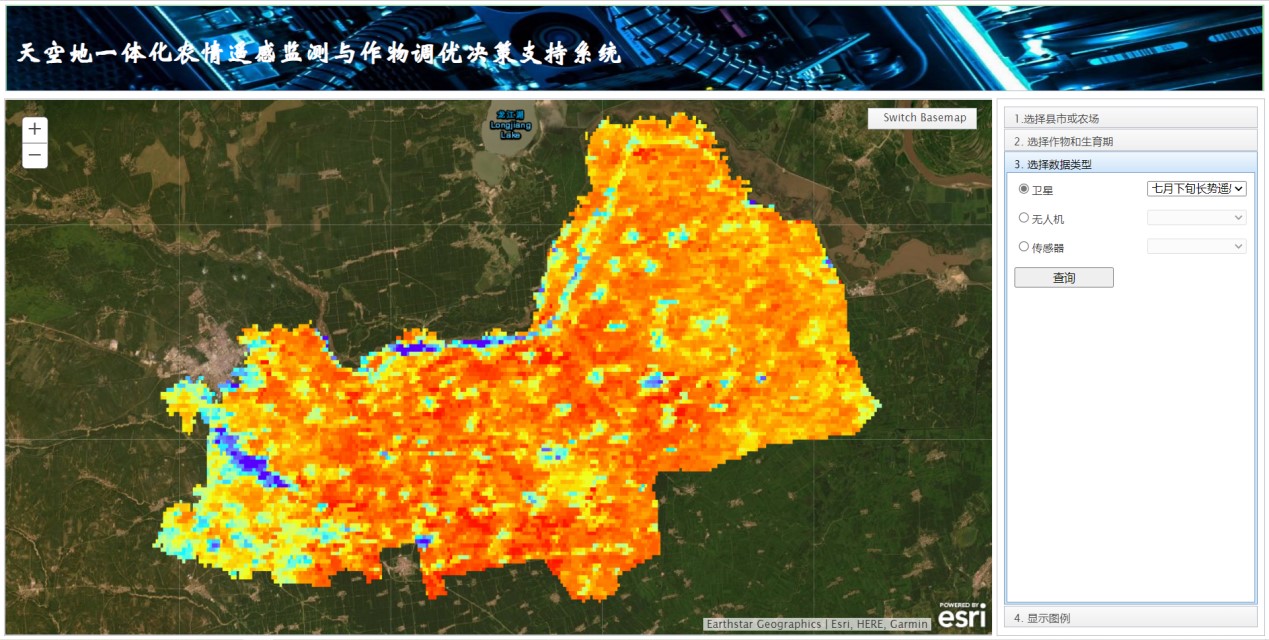 针对扎赉特旗现代农业产业园的智慧农业体系建设,李晓峰团队基于现有的智能设备和大数据资源,总结了一套适合当地的数据采集、处理、上传和发布的一体化操作流程,制作和更新了平台内的遥感数据,在系统上发布了可视化专题地图,帮助产业园实现远程数据产品制作和数据更新。