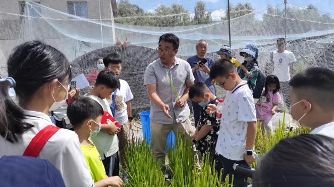 在盆栽实验场,沙汉景博士详细讲解了水稻植株的结构和不同生长时期的特性,带领同学们认识了不同发育时期水稻植株的生长特性;王乐博士向同学们展示了不同品种大豆植株的生长性状,介绍了野生大豆与常规大豆的区别,并认真观察了开花期的大豆植株特征。同学们通过近距接触农作物,了解东北主要农作物的生长史,切身体会到了日常食用的稻米和豆制品的来之不易,并表示今后会更加爱惜粮食,减少浪费,从我做起。此次活动得到了参与家庭的一致好评。