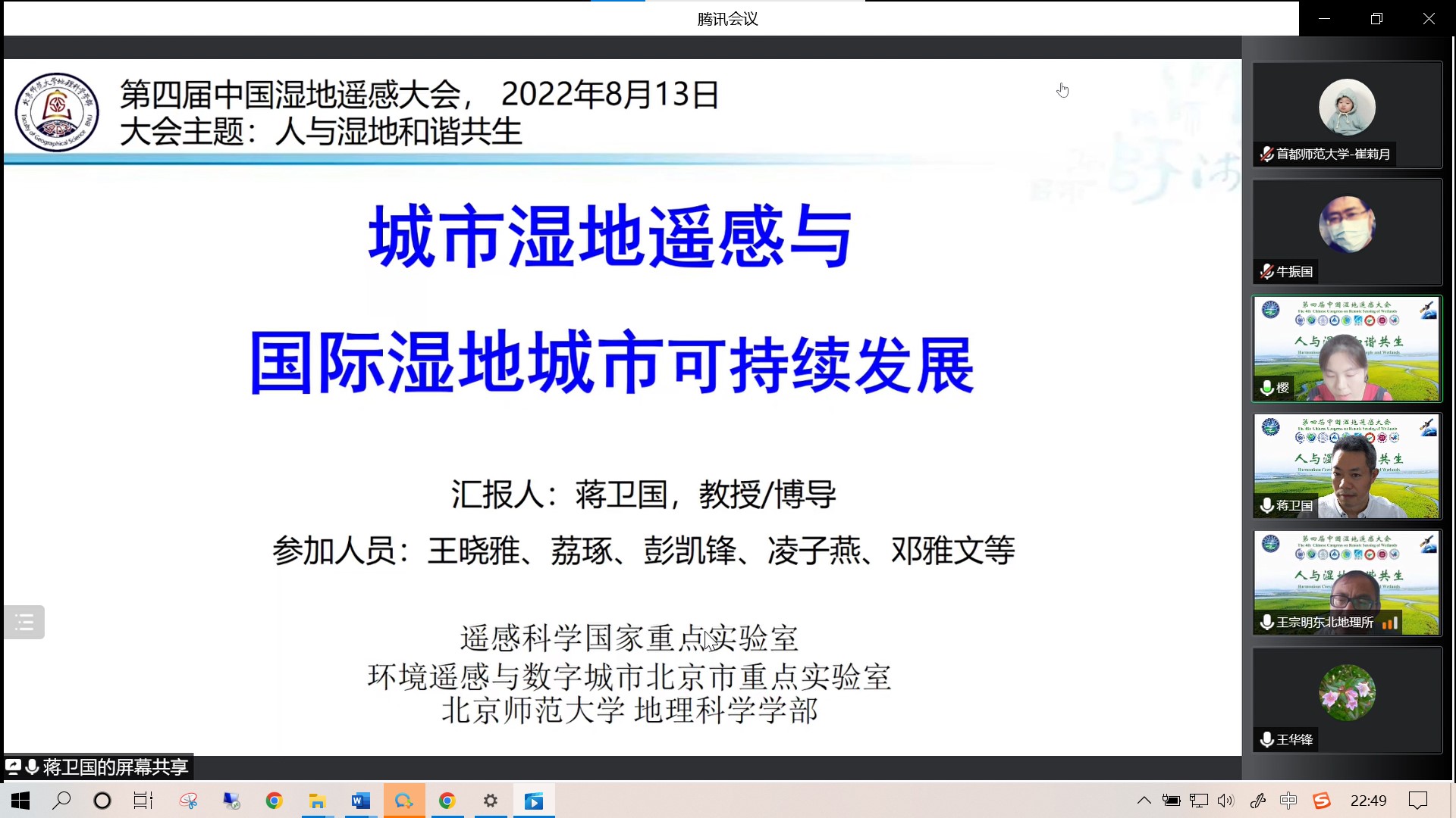 为了促进湿地遥感领域科研人员的学术交流,推动湿地遥感科学与技术的深入发展,提高遥感在湿地保护与管理的应用水平,2022年8月13日,第四届中国湿地遥感大会围绕“人与湿地和谐共生”主题,通过腾讯网络云平台顺利召开。同时在“遥感学报”梧桐会直播平台等网络直播。大会得到包括《遥感学报》等国内外11家湿地和遥感领域著名学术期刊的支持。