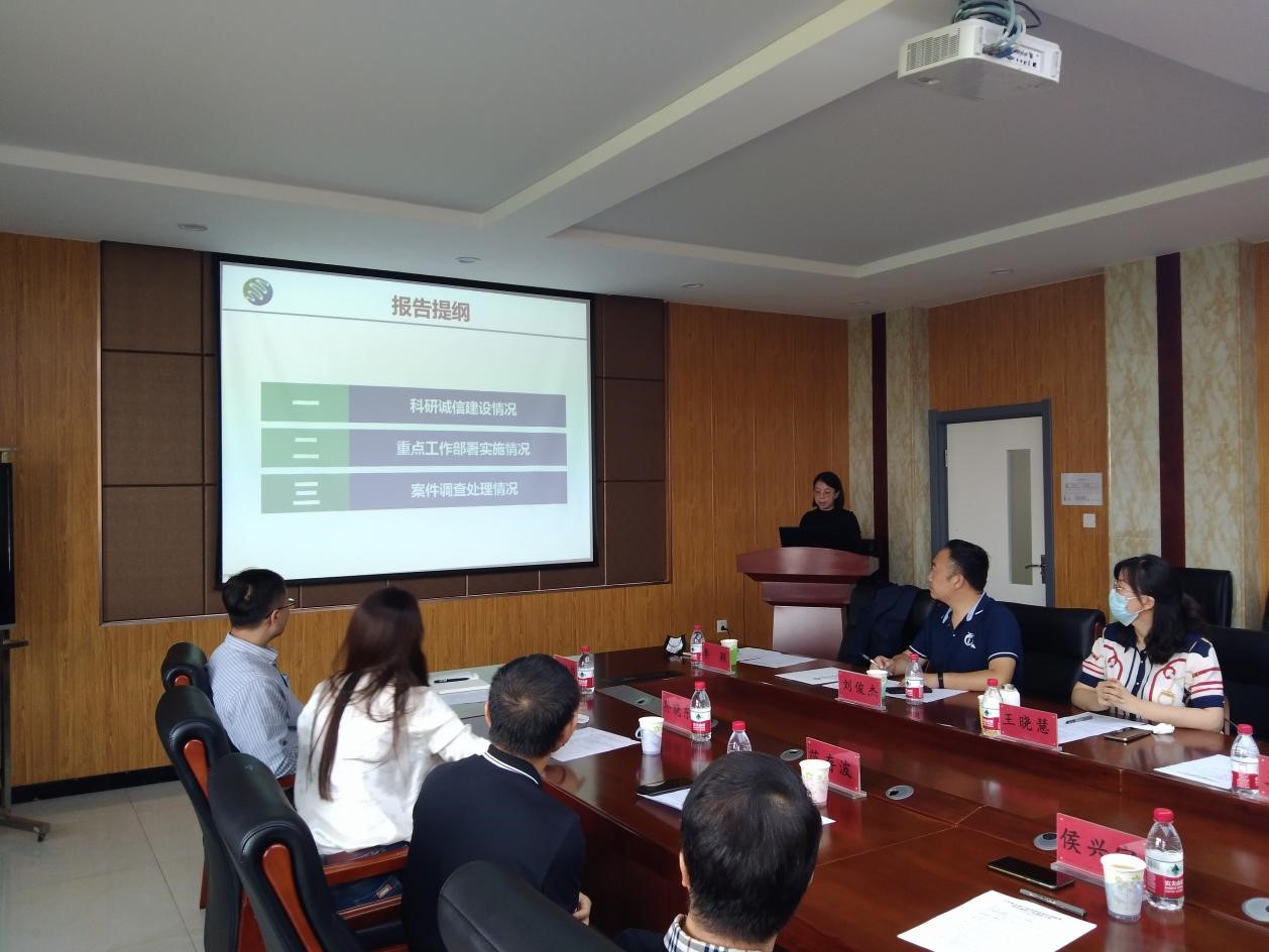 在科研诚信调研工作会上,侯兴宇一行听取了研究所关于科研诚信建设情况、重点工作部署实施情况和案件调查处理情况工作汇报。侯兴宇、赵勇、魏令波分别围绕研究所科研诚信建设、科研诚信教育、科研原始记录管理等方面内容与参会人员进行了深入交流并提出多项建议。范存波对研究所进一步加强科研诚信建设提出具体要求。副所长、农业技术中心主任王宗明,党委副书记、纪委书记王晓慧做表态发言,对侯兴宇一行来所农业技术中心开展科研原始记录检查、科研诚信工作调研表示感谢,研究所将以此次检查整改为契机,通过完善制度建设,开展多层次培训和常态化警示教育、科研诚信提醒等方式进一步加强科研诚信建设,为研究所重大任务的顺利实施保驾护航。