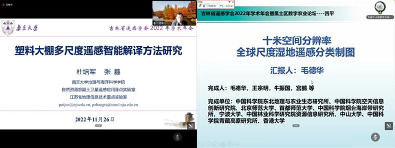 吉林省遥感学会2022年学术年会于2022年11月26日以线上腾讯会议形式召开。本次大会由吉林省遥感学会、国家国防科工局高分辨率对地观测系统吉林数据与应用中心主办,吉林师范大学、吉林高分遥感应用研究院承办,中国科学院东北地理与农业生态研究所、东北师范大学、吉林大学、延边大学、吉林建筑大学、吉林农业大学、长春师范大学、白城师范学院、通化师范学院、长光卫星技术股份有限公司、中农阳光数据有限公司等11家单位协办,来自省内外高校、科研院所和企业的专家、学者及研究生共270余人在线参加会议。
