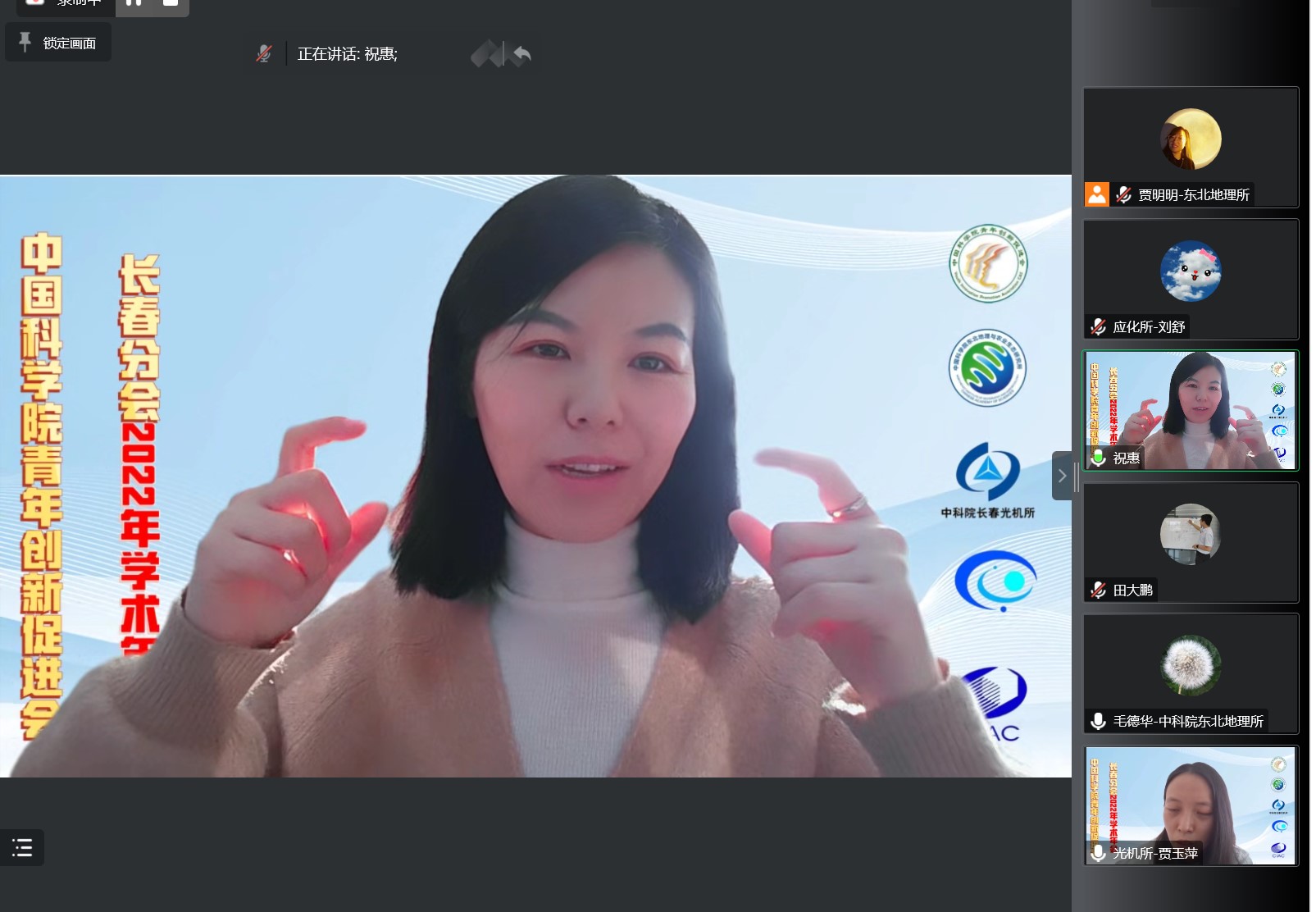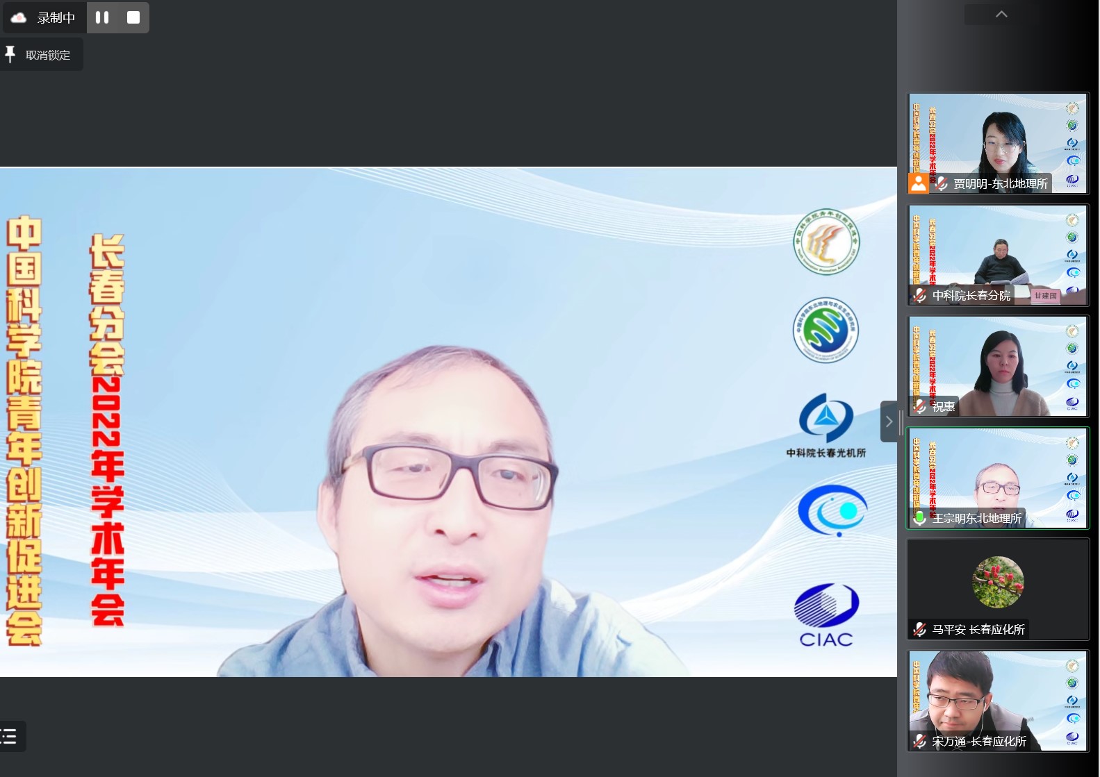 论坛开幕式上,甘建国、王宗明和祝惠发表了致辞。甘建国充分肯定了青促会长春分会所取得的成绩,鼓励青年科研人员勇挑重担,围绕世界科技前沿、国家卡脖子技术开展深入的研究,坚守科技创新服务国家、造福人民的初心和使命。王宗明代表青促会资深优秀会员从“青年”、“创新”、“促进”三个角度鼓励青年科研工作者为实现党和国家的第二个百年目标和中科院“四个率先”目标而奋斗。祝惠代表青促会理事会对长春分会2022年学术年会的胜利召开表示热烈的祝贺,希望青年科研人员珍惜优秀的研究平台和工作环境,为东北的振兴和发展贡献力量。