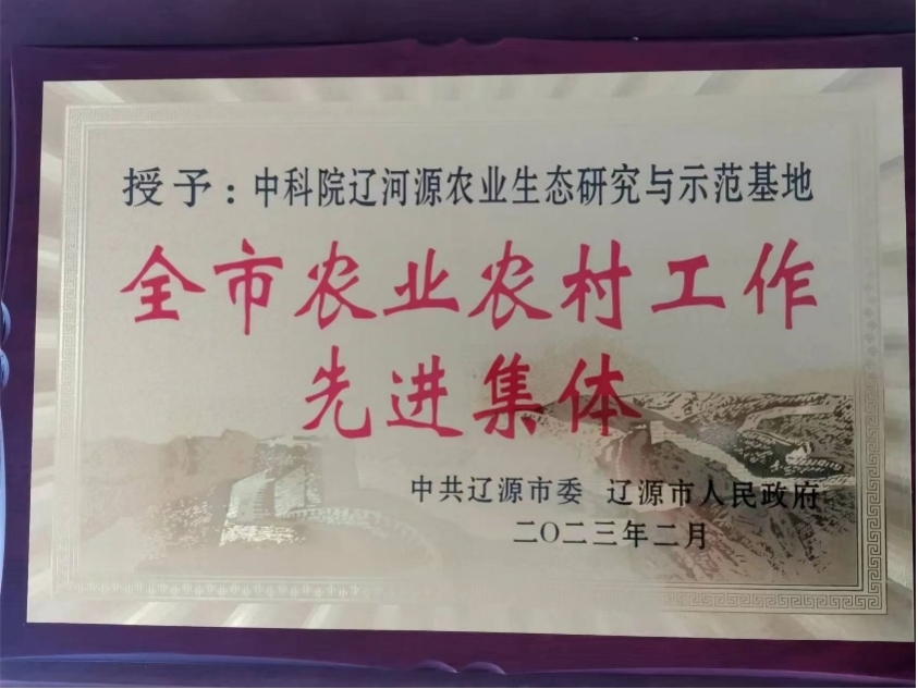 2023年2月3日,辽源市人民政府召开全市农业农村工作会议,表彰在农业农村工作中的先进单位,中科院辽河源农业生态研究与示范基地被评为辽源市农业农村先进集体。