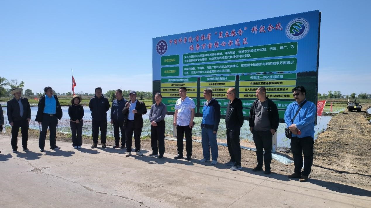 白城市农业机械化技术推广站站长金涛、农业技术推广总站站长安丽芬、农田建设管理服务中心主任孔凡江及高级农艺师石勇、种植养殖水产业管理科科长朱枫,镇赉县农业农村局农业推广中心副主任孙伟军及正高级农艺师赵慧,中科院东北地理所高级工程师刘淼,中联重科水稻有序抛秧技术团队、大疆农业技术团队以及乡镇农技人员、种植户等60余人参会。