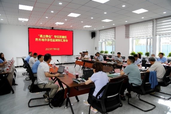 7月6日上午,首先召开了齐齐哈尔示范区调研汇报会,会议由段维新主持,贾仲君汇报了专项总体进展,示范区负责人廖晓勇研究员汇报了齐齐哈尔示范区工作进展,姜亚珍副研究员展示了农情监测系统和全域定制智能管控系统,模式五骨干姚启星博士通过沙盘介绍了齐齐哈尔全域分区施策系统,模式四负责人王介勇研究员汇报了黑土地保护与乡村振兴融合发展技术模式。专项监理组专家对专项管理及示范区建设工作提出了指导意见和建议。监理组一行还调研了齐齐哈尔示范区办公室、实验室、样品库等条件。