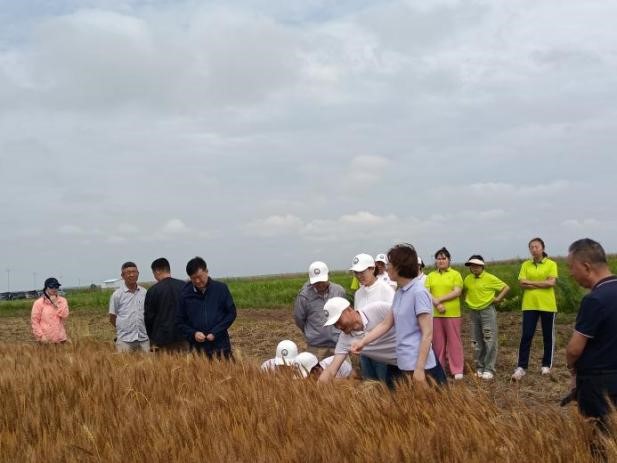 7月7日上午,监理组一行来到大安示范区进行实地考察。示范区负责人黄迎新研究员系统汇报了大安示范区工作进展。在洮南示范基地,监理组专家考察了小麦-燕麦草1年2季种植模式万亩示范区,示范区骨干胡娟助理研究员详细介绍了小麦-燕麦草1年2季种植模式及其经济和生态效益,并汇报了自立项以来研发的小麦早播、密植、水肥耦合技术,小麦“窄行宽幅”播种技术以及小麦秸秆还田快速培肥技术等,通过对该种植模式进一步优化升级,使小麦增产20%以上。合作单位吉林农业大学讲师田雨介绍了短生育期燕麦草品系选育的目标、效果及品种申报进展。