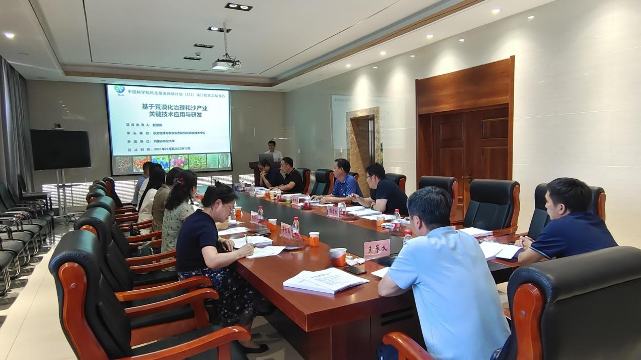 7月13日,由东北地理所赵恒田研究员主持承担的中国科学院科技服务网络计划(STS)区域重点项目“基于荒漠化治理和沙产业关键技术应用与研发”顺利通过专家组验收。院科技创新发展中心党委委员、所务委员兼科技合作处处长初玉、科技合作处业务主管王中、科技合作处项目主管司晨,东北地理所副所长、党委副书记王宗明等领导出席会议。会议由农业技术中心科研计划与财务处处长刘俊杰主持,项目合作单位内蒙古农业大学等单位骨干成员20余人参加了会议。