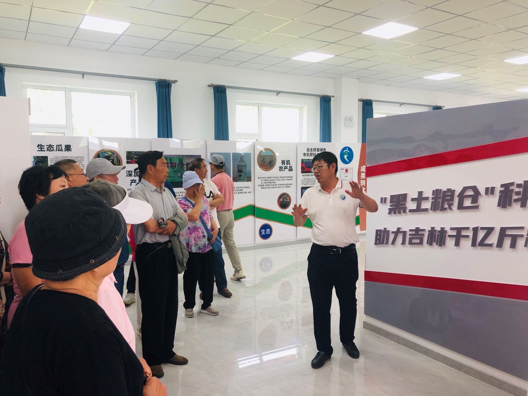 本次活动采取实地考察、现场学习的模式。基地副主任赵春生带领大家参观了基地的展室,介绍了基地的建设和发展、重大科研项目和创新成果、服务“黑土粮仓”科技会战等方面的情况。