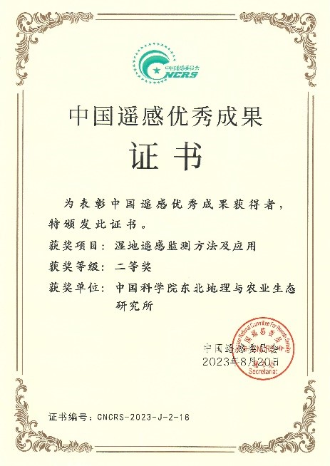 8月20日-22日,第22届中国遥感大会在江苏常州顺利召开。开幕式上举行了“2022年中国遥感优秀成果奖”颁奖仪式,东北地理所地理景观遥感学科组申报的“湿地遥感监测方法及应用”荣获2022年度中国遥感优秀成果二等奖,中国遥感委员会为获奖团队颁发了荣誉证书。