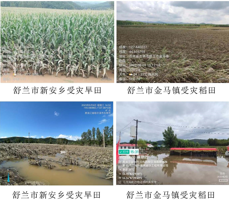 2023年8月份,受五号台风“杜苏芮”和第6号台风“卡努”的影响,吉林省和黑龙江省迎来了持续强降雨,多地出现了洪涝灾害。其中受五号台风“杜苏芮”的影响最为严重。黑龙江五常市迎来持续强降雨,拉林河流域发生50年一遇特大洪灾,五常市民乐朝鲜族乡、志广乡、卫国乡、龙凤山镇等18个乡镇不同程度受灾;吉林省舒兰市拉林河流域发生50年一遇特大洪灾,舒兰市金马镇、开原镇,七里乡等7个村镇受灾严重;白城市大安市两家子镇附近受洪水侵蚀较为严重,多处道路房屋受损,玉米大面积倒伏受灾,且仍有大面积积水存在,同兴村,同胜村,三家子,四家子等两家子镇下属村都受灾明显。