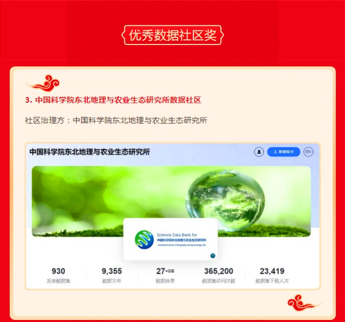 东北地理所数据社区荣获第三届“ScienceDB科学数据奖”优秀数据社区